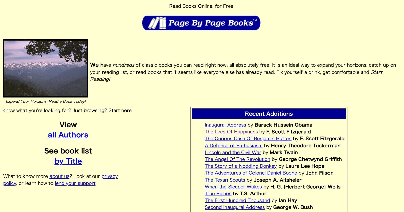![]() | Page by page books | 著作権切れの洋書を読めるサイト。児童文学あり。 |
